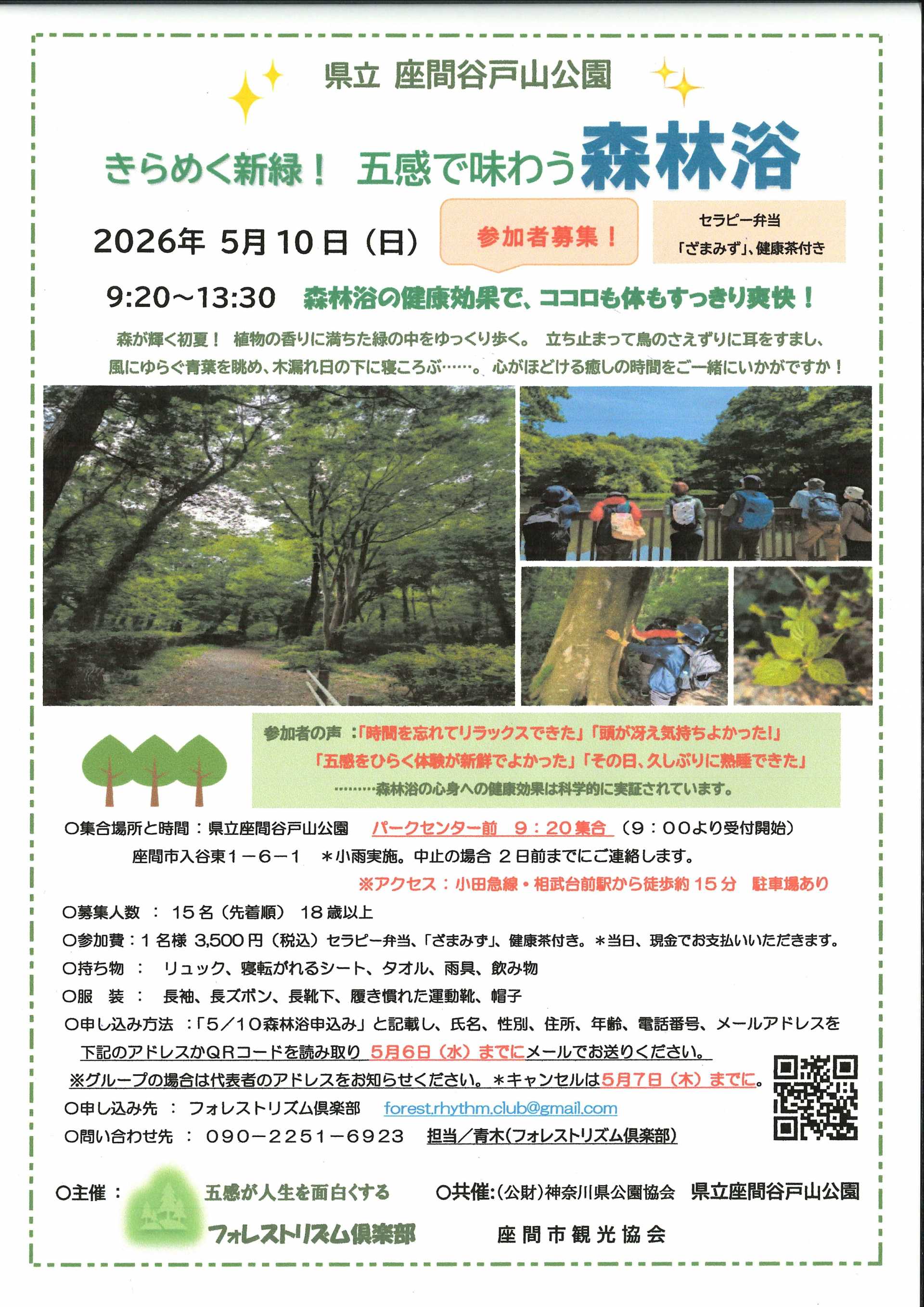問い合わせ先:090-2251-6923 担当:青木フォレストリズム倶楽部
